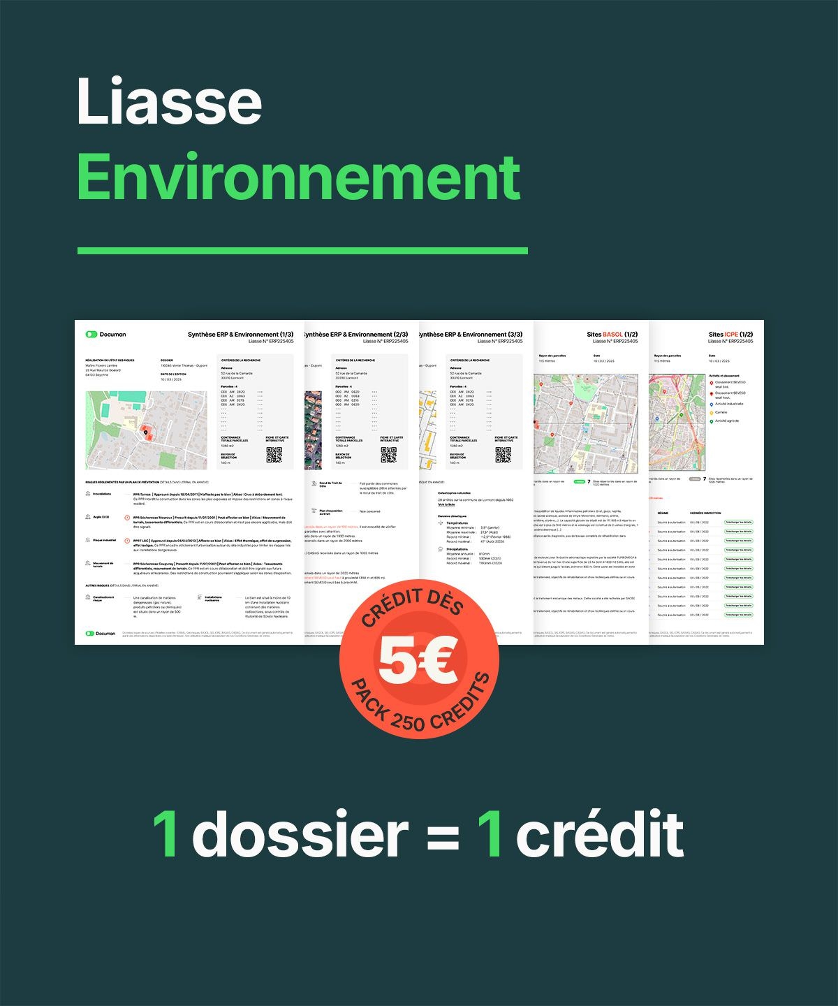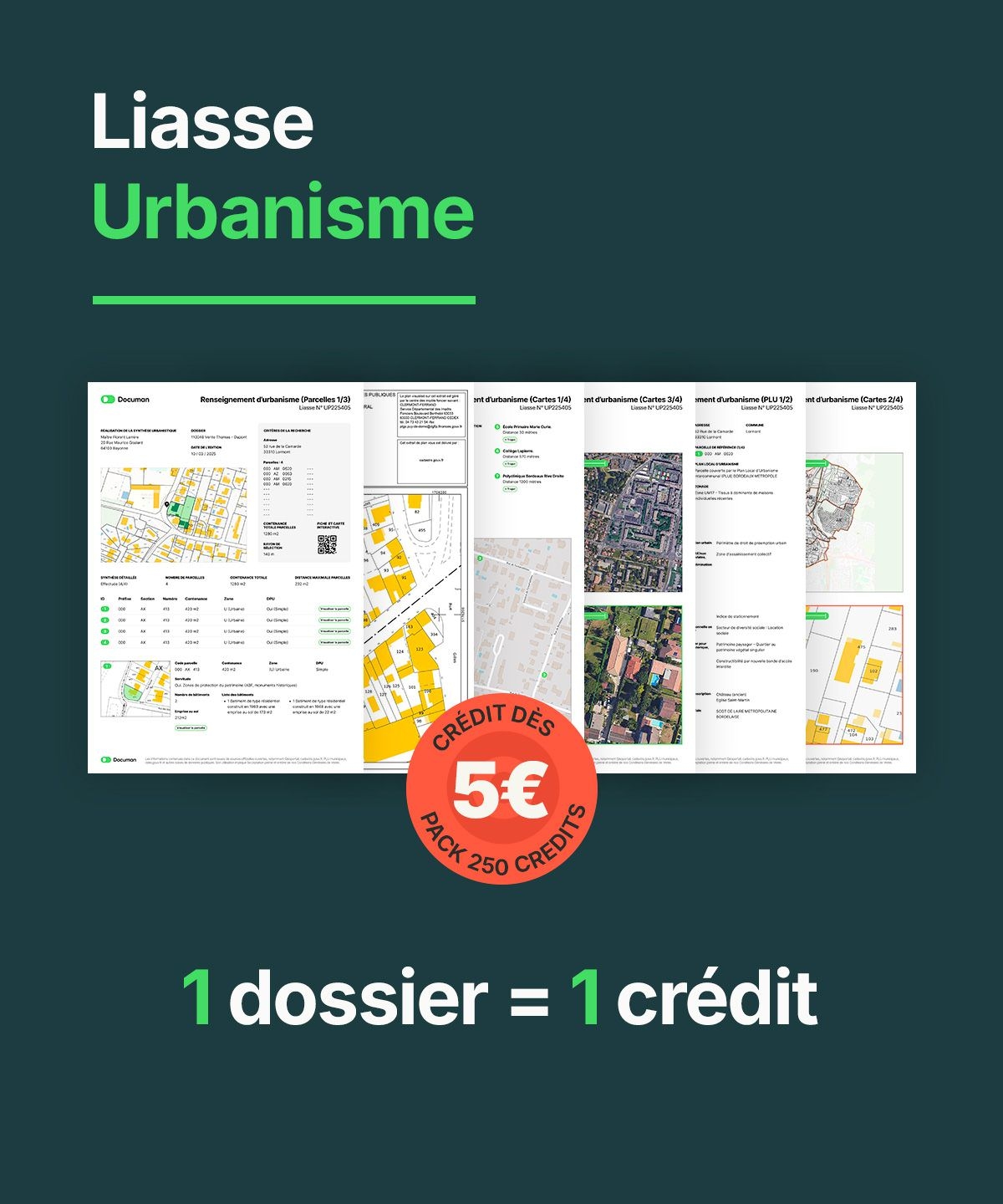 Toutes les demandes de liasse pour vos dossiers sont accessibles pour 1 crédit (5€HT). Voici le détail par Liasse.